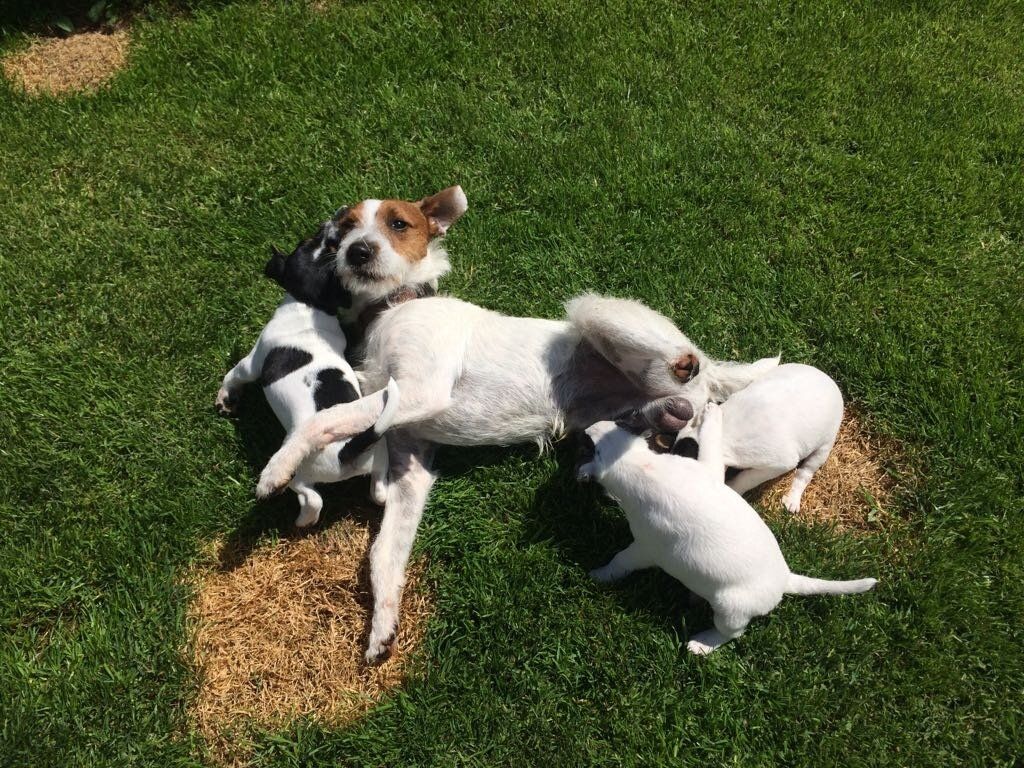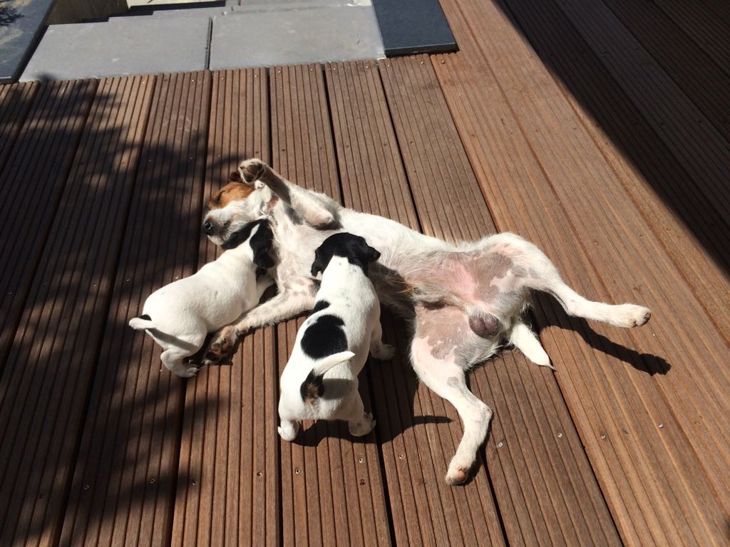 Am 27.04.2018 hat unsere Attacke 3 kräftige tricolor Hündinnen geboren. "Avanti", "Annemie" und "Alwine"