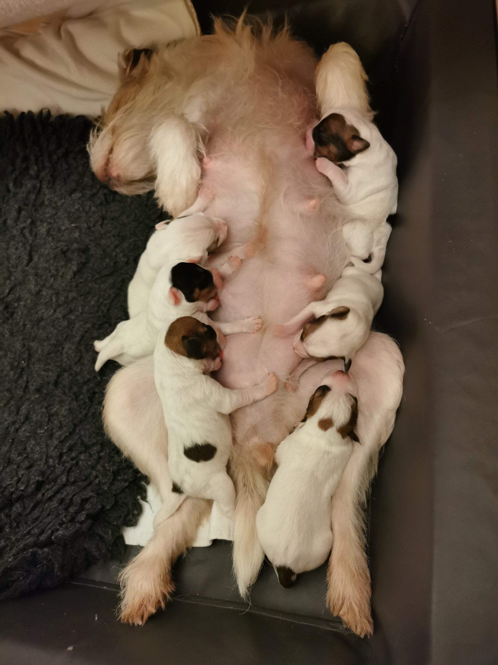 Am 09.02.2021 hat meine "Peppa" den C-Wurf zur Welt gebracht. Peppa und ihre 6 Welpen( 2 trikolor Rüden und 4 weiß-braune Hündinnen) haben die Geburt alle bestens hinter sich gebracht.